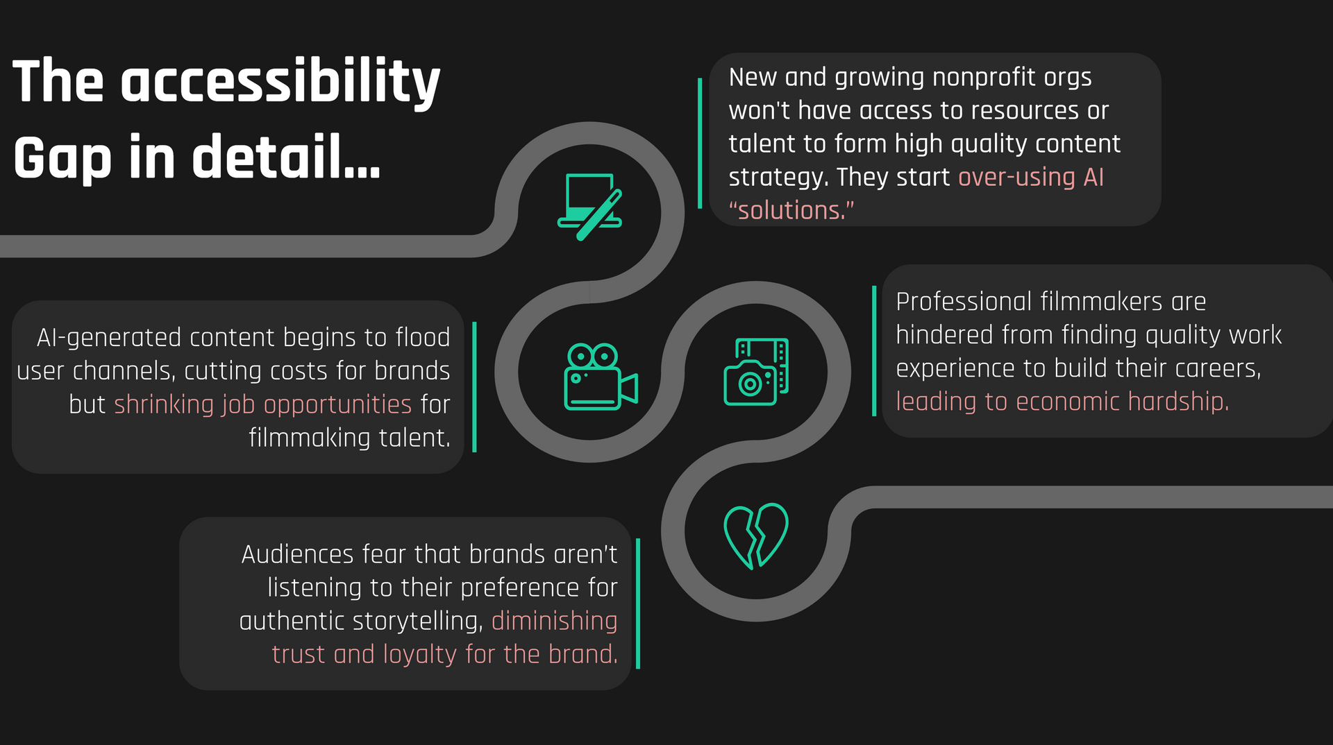 to hire talent for branded content production. They look for shortcuts through automation tools such as A.I. software, creating harmful practices that leave behind a highly-skilled workforce.